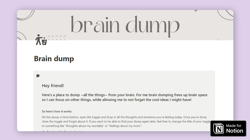 So what can you do? π£οΈClose some tabs bestie! "But I don't wanna lose these ideas!" That's what this template is for. Dump all those thoughts and ideas to free up brain-space so you can start operating faster, smoother and actually get things done.